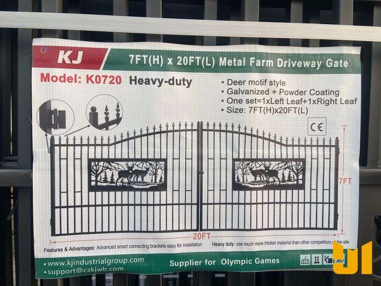 LOT 370 - 7 FT X 20 FT METAL FARM DRIVEWAY GATE W/ DEER MOTIF